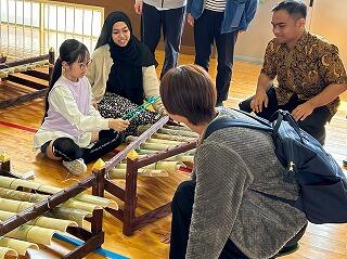 交流をしていると、インドネシアの留学生の方から楽器を演奏してみたいとの申し出がありました。