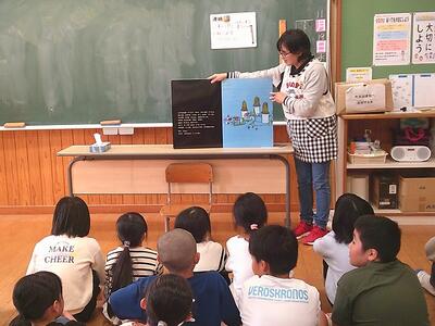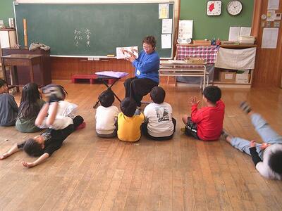 1年生は絵本を聞きながら動作まで。驚きを表して飛び跳ねていました。反応がいいですね。