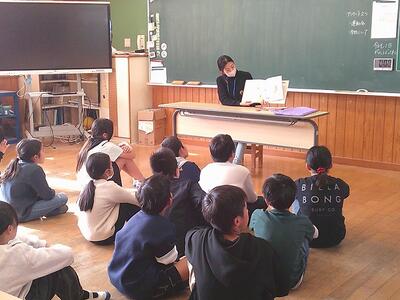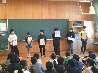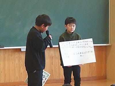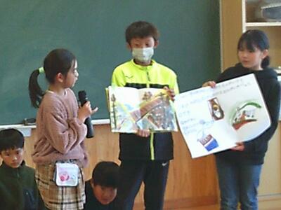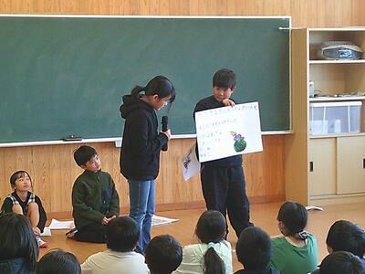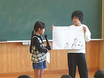 26日には図書委員会による「読書集会」も開かれました。図書委員会が選んだ本にまつわるクイズが出題され、全校児童は楽しそうに答えていました。