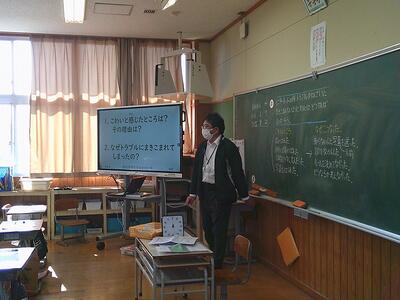 5年生は栄養教諭の宮原先生から「食育(栄養)」に関する授業を受けました。