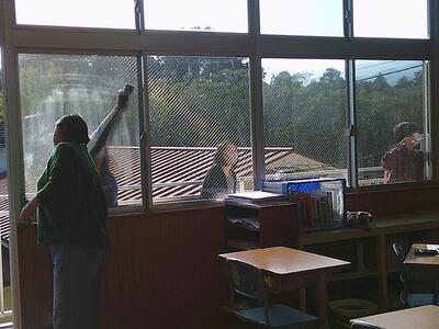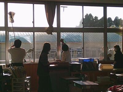 15:00からは保護者による窓拭きがありました。15:00のスタートとともに各学年一斉にスタート。保護者のみなさまのご協力で普段窓が本当にきれいになりました。中も外もピカピカです。