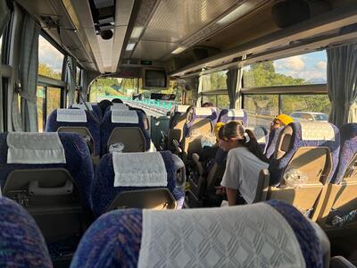 帰りのバスでは、クイズやカラオケ大会で大盛り上がりです。