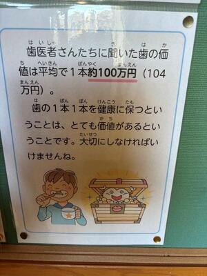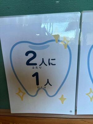保健室前に「数字で見る歯のひみつ」コーナーができました。