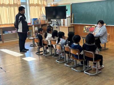1年生は絵本を聞きながら動作まで。驚きを表して飛び跳ねていました。反応がいいですね。