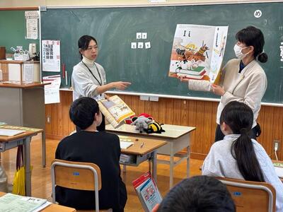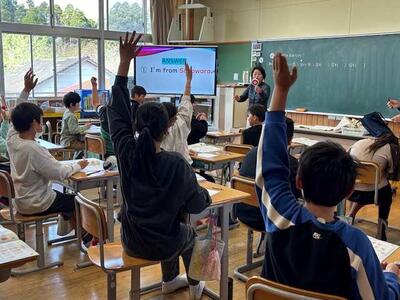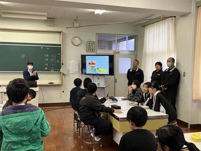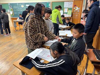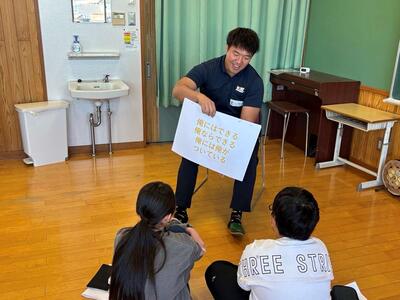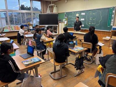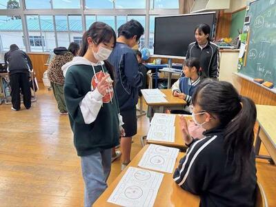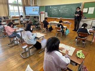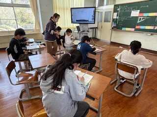 今日は都農中学校の英語の先生に来ていただいて、学習を行いました。楽しく、分かりやすく学習を進めていただき、発音のポイントについても教えていただきました。中学校での英語の学習が楽しみです。よろしくお願いします。
