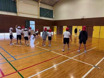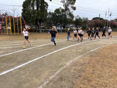 6年生の企画により、全校でけいどろ(けいさつとどろぼうに分かれて追いかけっこをするおにごっこのような遊び)をしました。5分間を4セット行い、20分間走り続けました。1セット約6人の警察で追いかけ、とてもいい汗をかいたところです。学年分け隔てなく楽しく遊べてとてもいい企画でした。6年生の皆さん、ありがとうございます。