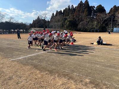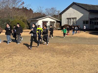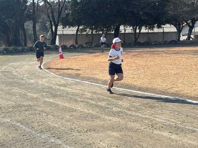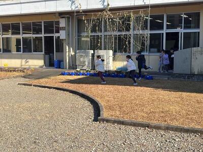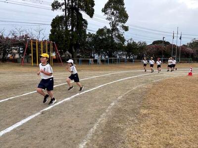 昼休みの後の時間に全校で持久走の練習をしました。自分のペースで走り、自己ベストの記録を出せるように頑張っています。準備運動や走った後の整理運動もしっかりやっています。