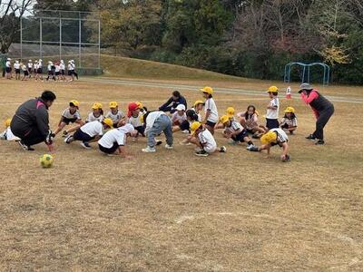 【しゃがんでひっくりかえす動作 結構大変です。みんな必死です。】