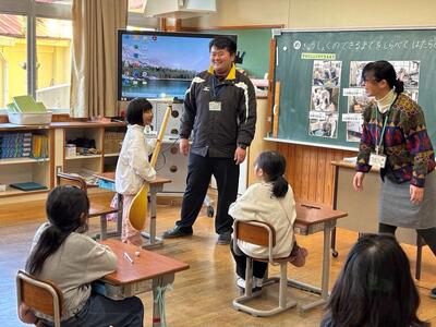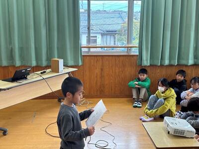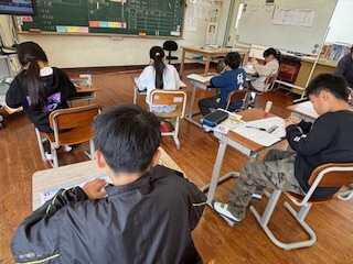 今日は、分校と本校の子どもたちが一緒に3時間授業を行い、一緒に給食を食べて、一緒に昼休みを遊ぶ合同学習の日です。一緒に学習をしながらより多くの人数で体育をしたり、音楽をしたりとたくさん楽しめました。
