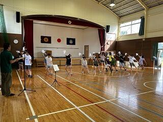 他の子どもたちよりも一足先に、衣装を着た5・6年生は体育館で練習をしていました。