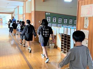 4年生の子どもたちはこの作業には携わらないのですが、ご協力いただく皆様に伝えたい気持ちがあるということで、玄関前にやってきました。