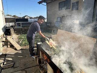 その前段の作業(竹の切り分け)を地域の方が引き受けてくださっています。