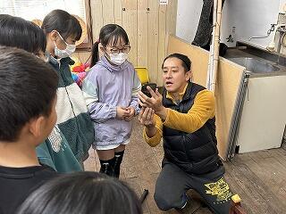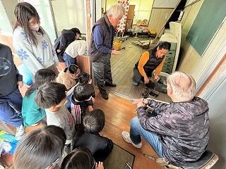 来校され、子どもたちと顔を合わせた後、竹を保管していただいている地域の方のお宅へご案内しました。