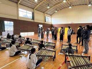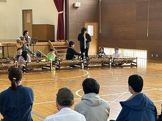 子どもたちが、楽器の保管場所の片付けが終わった頃、インドネシアのバリ島でRindik(リンディック)の演奏方法や作り方を学んでおられた成澤けやき様が、帰国されました。