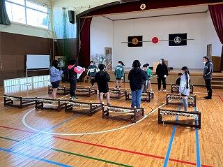 体育館の方からリンディックの音色が聞こえてきたので見に行くと、4年生が一生懸命リンディックの練習をしていました。