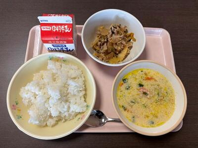 クリーム煮の白菜がシャキシャキしていました。ニンジンなど他の野菜やお肉も一緒に煮るので、あの食感を出すのは難しいのではないかと思いました。今日も、調理場の方々の思いを感じる給食でした。