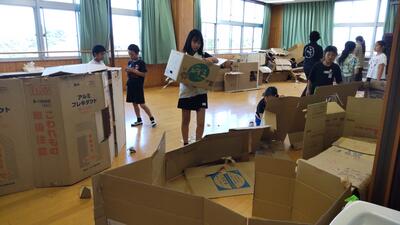 【男子は体育館のフロアにシートを敷きます】