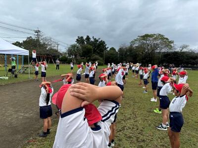 開会式の流れをスタートに、運動会の歌の練習、エール交換、全校リレーの入退場(少しぬかるんでいたので、早歩きでバトンパスを練習)、応援などの確認をしました。