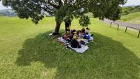 【昼食は平和台で都農町内の6年生みんなで食べました。】