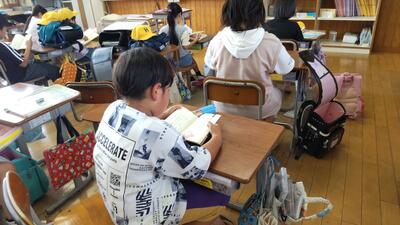 昼休みの後は、15分間の読書の時間です。外で元気に遊んだ後でも、落ち着いてしっかりと読書に取り組む姿が見られます。本は心の栄養でもあります。どんどん素敵な人になってほしいです。