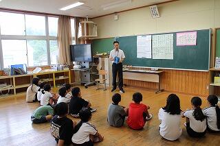 今日来た子どもたちは、自分たちが作成した都農町のポスターについて話を聞きにきました。