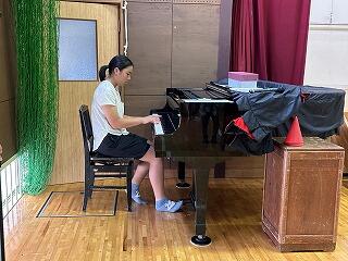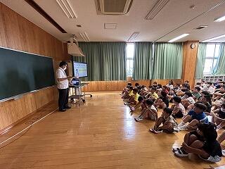 例年、鑑賞教室は体育館で行っていますが、日中の体育館はとても暑く、音楽鑑賞をするのに適した場所ではありません。また、事前打合せの際、人数的に特別活動室での実施が可能とわかり、本年度はエアコンが使用できる特別活動室で鑑賞教室を行いました。