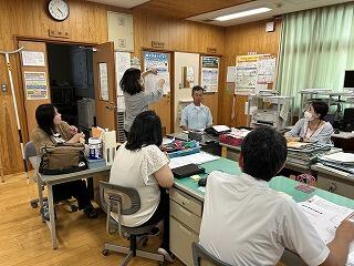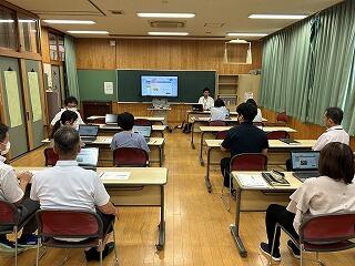 子どもたちがいない学校では、2学期以降の教育活動がより円滑に進むよう話し合いをしたり、先生方自身の指導力等を向上させるため、いろんな研修を行い学びを深めています。