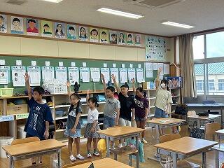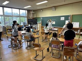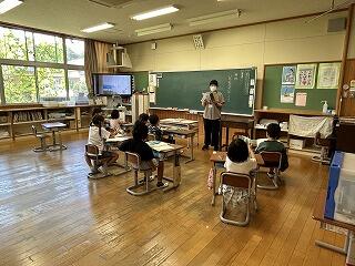 1年生の5時間目は生活科です。時間割には「なつがやってきた」とあったので、どんなことをしているか覗きに行きました。