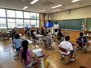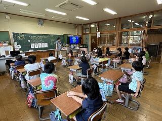 1時間目の休み時間から教室に入りましたが、分校の友達の入室を待ちきれず、ろう下まで出迎える姿も見られました。(写真は間に合いませんでした。)