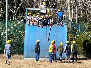 【「ここはビップ席です!!」と言い、遊具の上から応援する子どもたち】