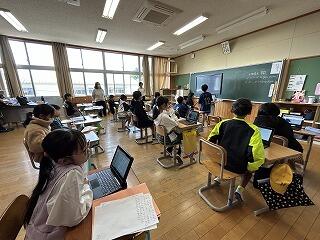 担任の先生は、動画の内容を説明したり、子どもたちの学習状況を確認したりするので、配信された動画を再生するのはICT支援員の先生にお願いして、円滑に授業を進めていました。