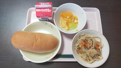 今日のメニュー【コッペパン、牛乳、焼きそば、フルーツゼリー和え】