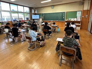 3年生以上の学級は子どもたちが作文用紙を前に、書くことに集中している姿が見られました。