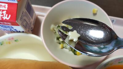 星のコロッケが初めてでびっくりしましたが、そうめん汁に入っていたニンジンも星形にカットしてあり、作ってくださる方々の愛情を感じました。子ども達は、幸せな気持ちになると思います。