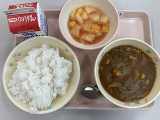 今日のメニュー【ご飯、牛乳、夏野菜カレー、フルーツジュレ】