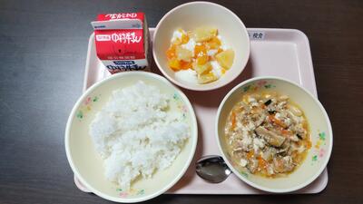 今日のメニュー【ご飯、牛乳、マーボー豆腐、フルーツ杏仁】