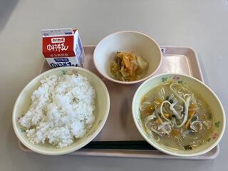 今日のメニュー【ごはん 牛乳 豚もやしスープ 白身魚の日向夏(ひゅうがなつ)南蛮】
