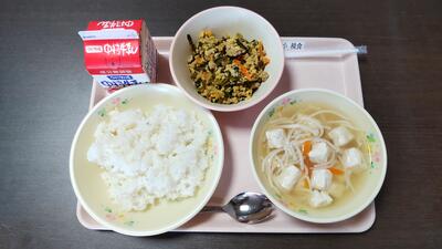 今日のメニュー【ご飯、牛乳、魚ソーメン、高菜そぼろ丼】