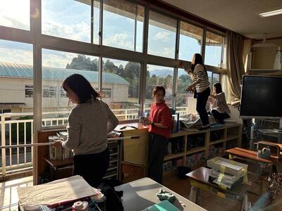都農町図書館の方が本をたくさん持ってきてくださいました。11月は読書月間でもあり、たくさんの子どもたちが本を借りています。