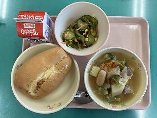 今日の給食のメニュー【牛乳 マヨネーズパン ポトフ アスパラガスのサラダ】