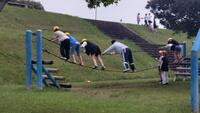 登り棒が遂に完成し、使えるようになりました。昨日、遅くに業者の方が囲っていたネットを取りに来ていただき、本日から使えるようになったところです。本当にありがとうございます。色もカラフルで気持ちも盛り上がります。