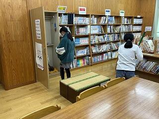 ろう下で段ボールを片付けていたり、女子トイレや図書室、特活室、放送室を掃除している4年生の姿がありました。