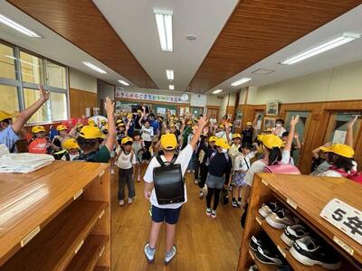 最後に6年生の掛け声で、横断歩道でのわたり方であるハンドアップの練習をして集団下校をしました。車には十分に気を付けて、安全第一で登下校をしてほしいと思います。