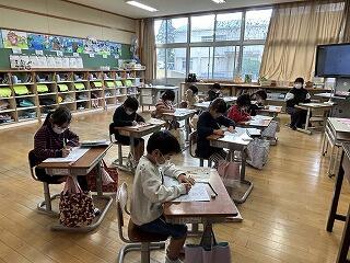 ふと、1年生の教室を覗くと、書写の学習をしていました。