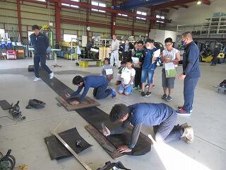 ベルトコンベヤの修理を体験することができ、子どもたちも仕事の難しさや面白さを感じているようでした。
