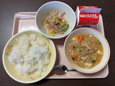 今日のメニュー【ごはん、牛乳、麻婆豆腐、春雨の和え物】