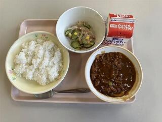 今日のメニュー【ご飯、牛乳、ポークハヤシライス、和風大根サラダ】