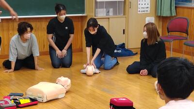 東児湯消防組合の方に来ていただいて心肺蘇生法の講習会を行いました。たくさんの保護者の方にご参加いただき、胸骨圧迫やAEDの使い方、そして窒息に対する応急手当として背部叩打法を学びました。子どもたちの大切な命を守るために、正しい知識を学ぶことができて本当に良かったです。