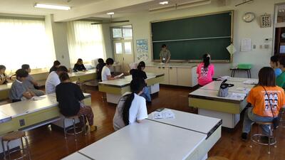 都農中学校の教頭先生に来ていただいて、都農中学校の魅力をお話しいただきました。