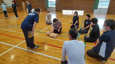 東児湯消防組合の方に来ていただいて救急救命の講習会を行いました。